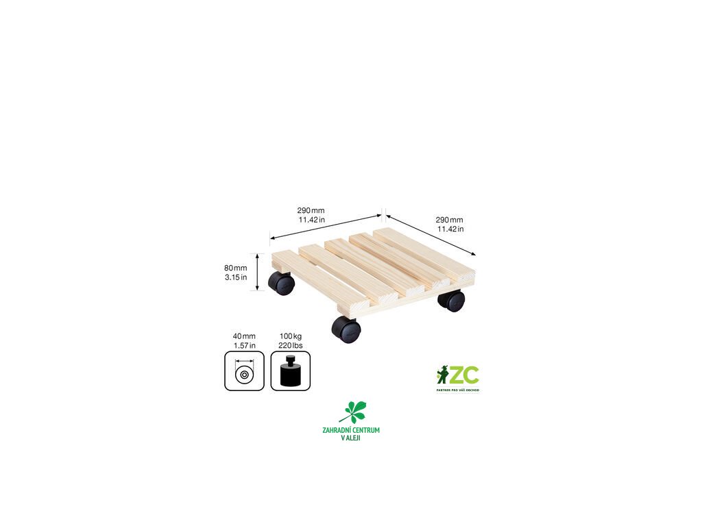 Podstavec je vyroben z kvalitního borovicového dřeva čtvercového tvaru. Díky spodním kolečkům usnadňuje manipulaci s květináčem s nosností do 100 kg.