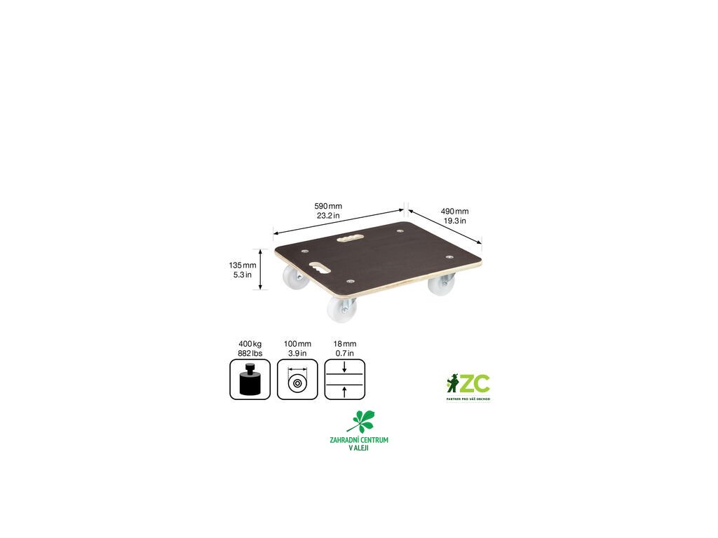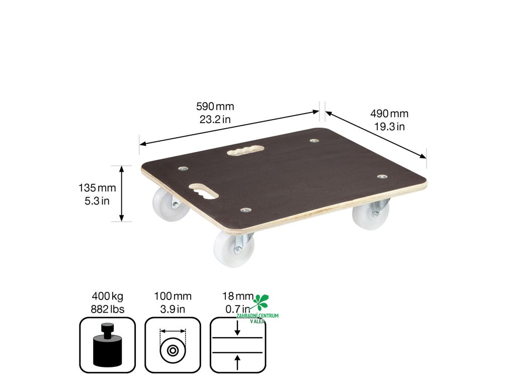 Transportní podložka je ideální pro snadné a pohodlné přemisťování velmi těžkých nákladů, nosnost 400 kg.