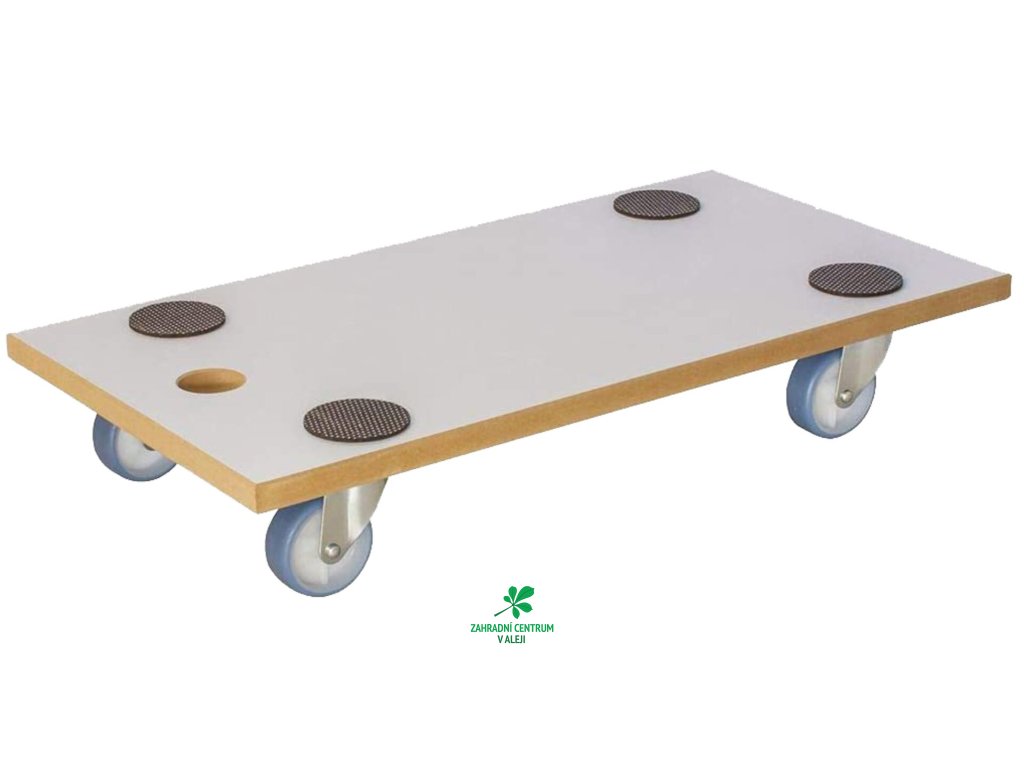 Transportní podložka, otvor pro zavěšení, 4 otočná kolečka měkká, nosnost 250 kg, bílá, 57,5 ??x 30 x 10 cm.