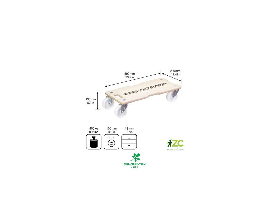 Přepravní plocha bříza Birke-Multiplex 59 x 29 x 13,5 cm, úchyt na přenášení, kolečka tvrdá O 10 cm, nosnost 400 kg.