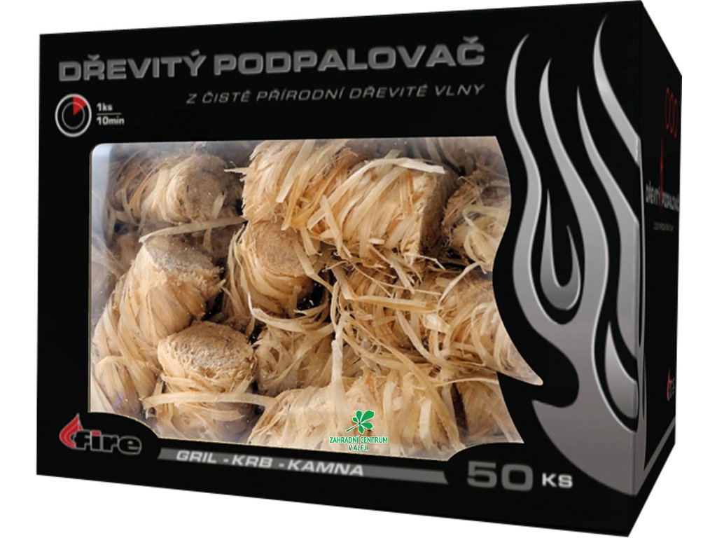 Fire dřevitý podpalovač 50 ks x 58 mm - tento podpalovač na bázi dřevěných hoblin má vynikající podpalovací schopnosti a je vhodný k podpálení různých druhů materiálů, bez potřeby papíru nebo třísek. Jeho síla je především v době hoření, kdy jeden smotek hoří až 10 minut. Během této doby mu neodolá téměř žádný materiál, který by nepodpálil. Baleny jsou jednotlivé smotky do krabičky po 50 ks a zabaleny smršťovací fólií. Je vhodný pro zatápění v krbech, kamnech, zahradních grilech, ale i otevřených ohništích.