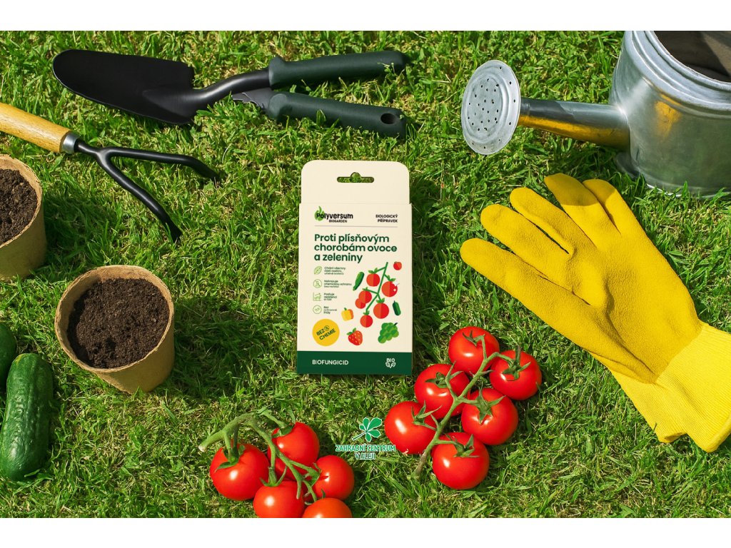 Polyversum - Biogarden je vhodné aplikovat proti houbovým chorobám mořením, namáčením sazenic a řízků, zálivkou nebo postřikem. Balení je určeno pro ošetření plochy vzcházejících rostlin až na 500 m2.