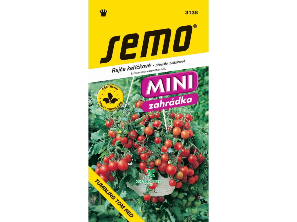 TUMBLING TOM RED – kolekce MINI ZAHRÁDKA - červená odrůda převislých třešňových rajčátek určených pro pěstování v závěsných nádobách nebo samozavlažovacích truhlících. Pravidelné přihnojování zvýší násadu plodů.