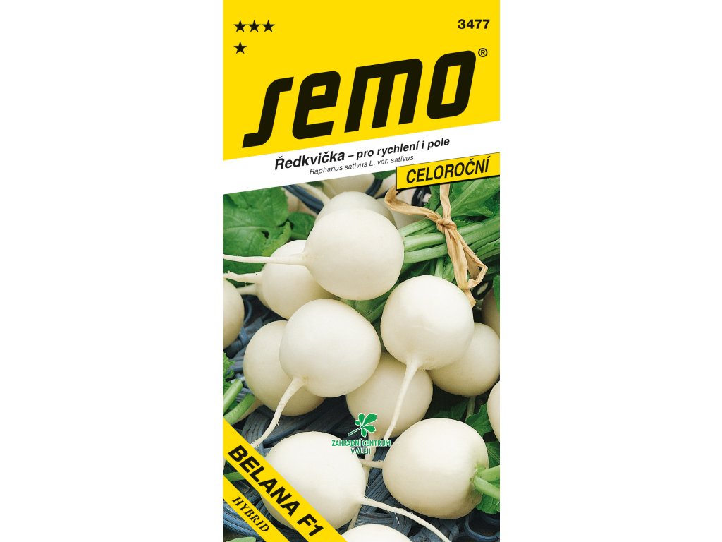 Raná hybridní ředkvička s kulatými bulvičkami sněhově bílé barvy. BELANA má větší, velikostně i tvarově vyrovnané bulvičky odolné k praskání i vyšeptávání. Její nať je tmavá, středně nízká. Tato nová hybridní ředkvička je také velmi odolná k vykvétání a můžeme ji tak doporučit pro celoroční pěstování, včetně nejranější jarních i problematických letních výsevů.