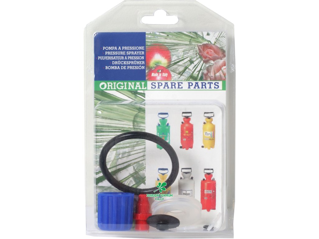 Sada náhradních dílů k postřikovačům Lady a Mary, obsahuje manžetu pístu, těsnění tlakového válce a šroubení k připojení hadice.