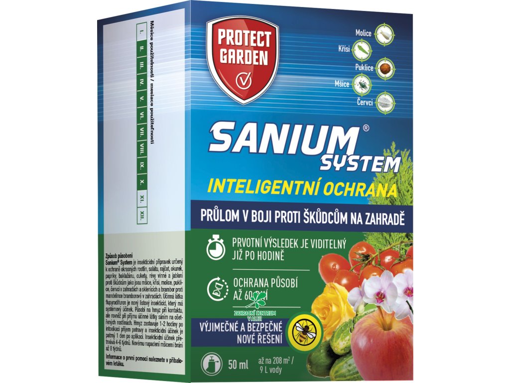 Sanium® System je insekticidní přípravek určený k ochraně okrasných rostlin, salátu, rajčat, okurek, papriky, baklažánu, cukety, révy vinné a jabloní proti škůdcům jako jsou mšice, křísi, molice, puklice, červci v zahradách a sklenících a brambor proti mandelince bramborové v zahradách.