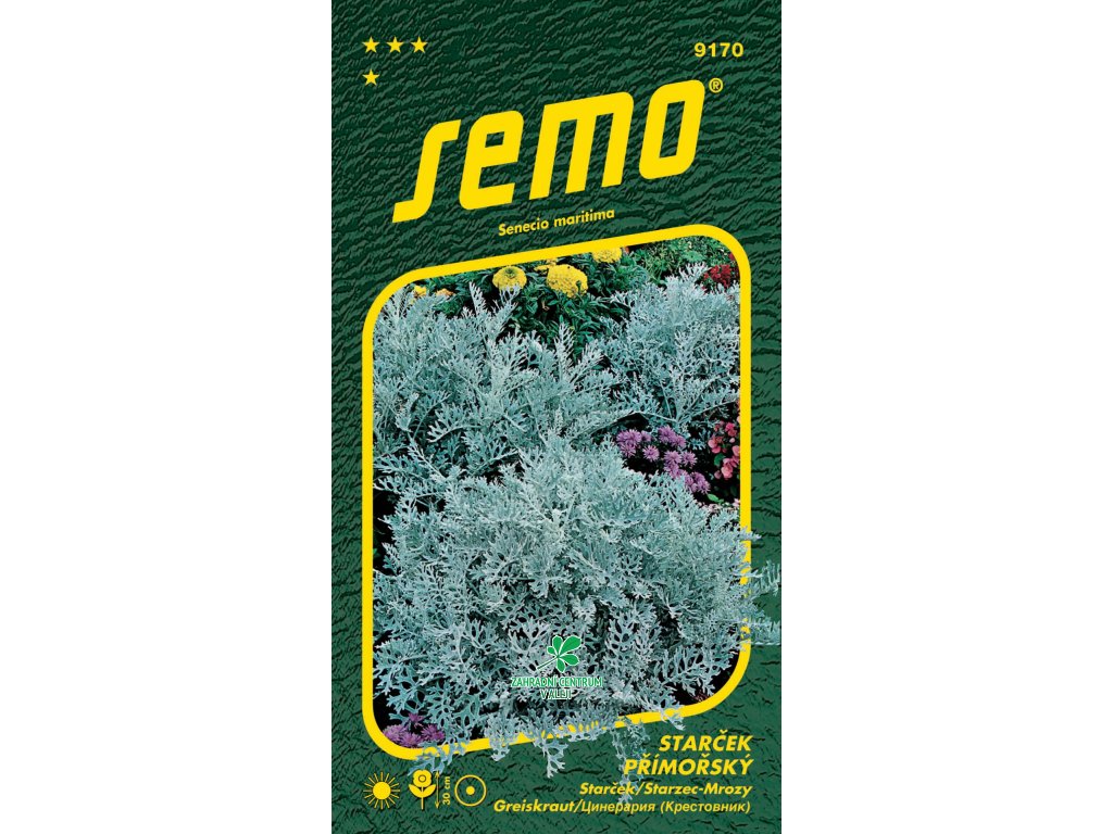 Vytrvalý polokeř pěstovaný jako letnička. Přízemní růžice stříbřitě bílých, vykrajovaných listů vytvářejí zajímavý kontrast v pravidelných ornamentálních výsadbách (např.s modrými letničkami, šalvějí nebo odrůdami Begonia semperflorens). Malé úbory žlutých květů rozkvétající v létě, je vhodné odstraňovat.
