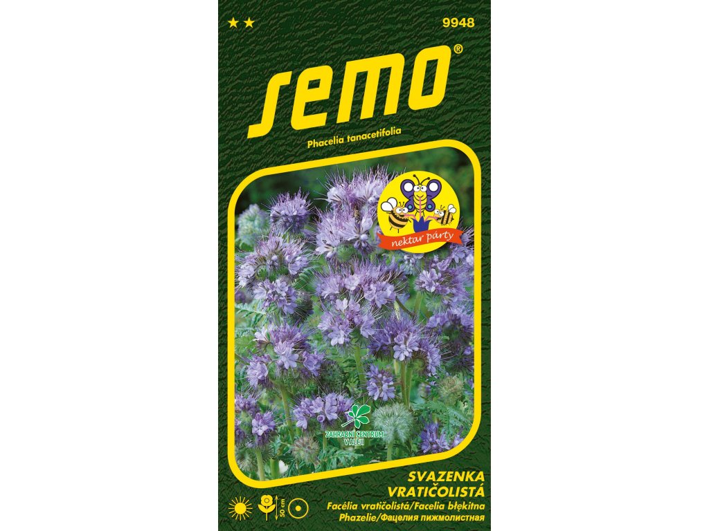 Kolekce NEKTAR PÁRTY - svazenka, je odolná jednoletá bylina s modrofialovými květy vysoká cca 50cm. Kvete po celé léto a velkým množstvím květů láká včely, čmeláky a další opylovače. Je významnou medonosnou plodinou. Navíc má příznivý vliv na půdní strukturu. Vyséváme jako hlavní plodinu od března nebo jako následnou meziplodinu až do počátku srpna.