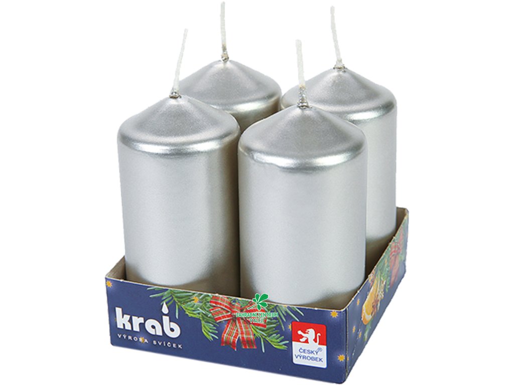 Svíčka adventní válec 40x80 mm - metalická stříbrná (4ks)