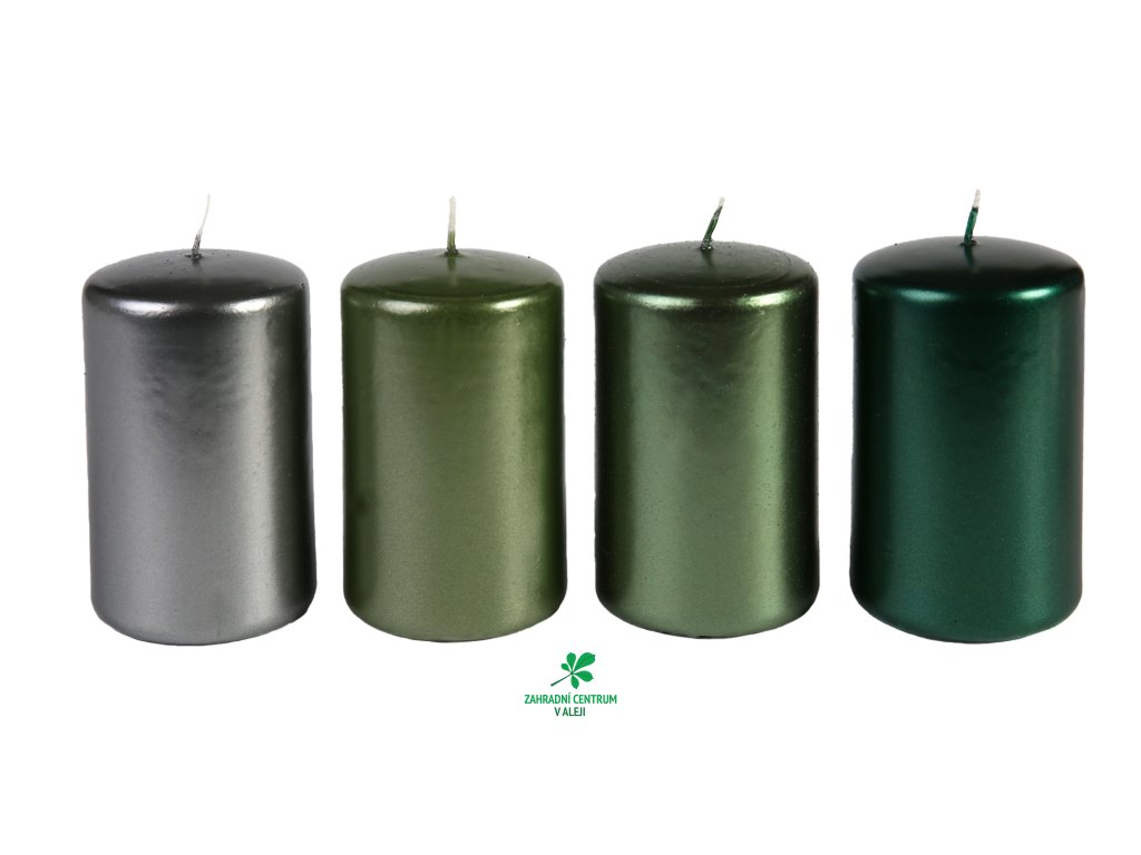 Svíčka adventní válec 60x100 mm - metalická mix zelená (4ks)