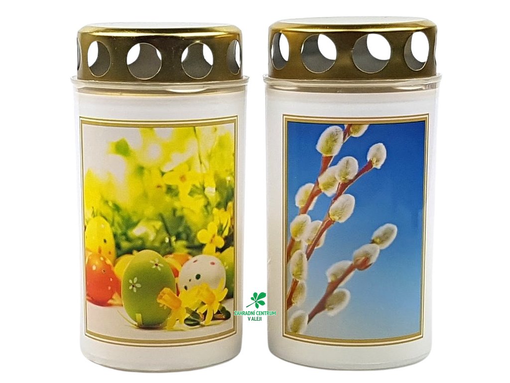 Hřbitovní svíčka s víčkem s velikonočními obrázky - mix motivů.