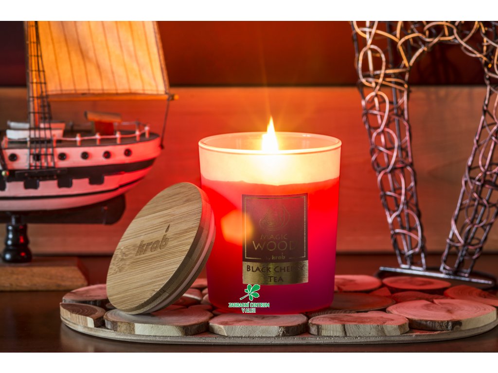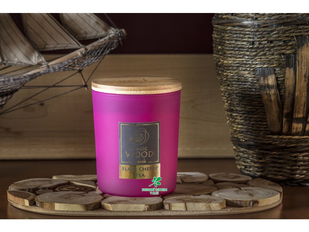 Svíčka sklo - MAGIC WOOD 300 g - Black Cherry Tea