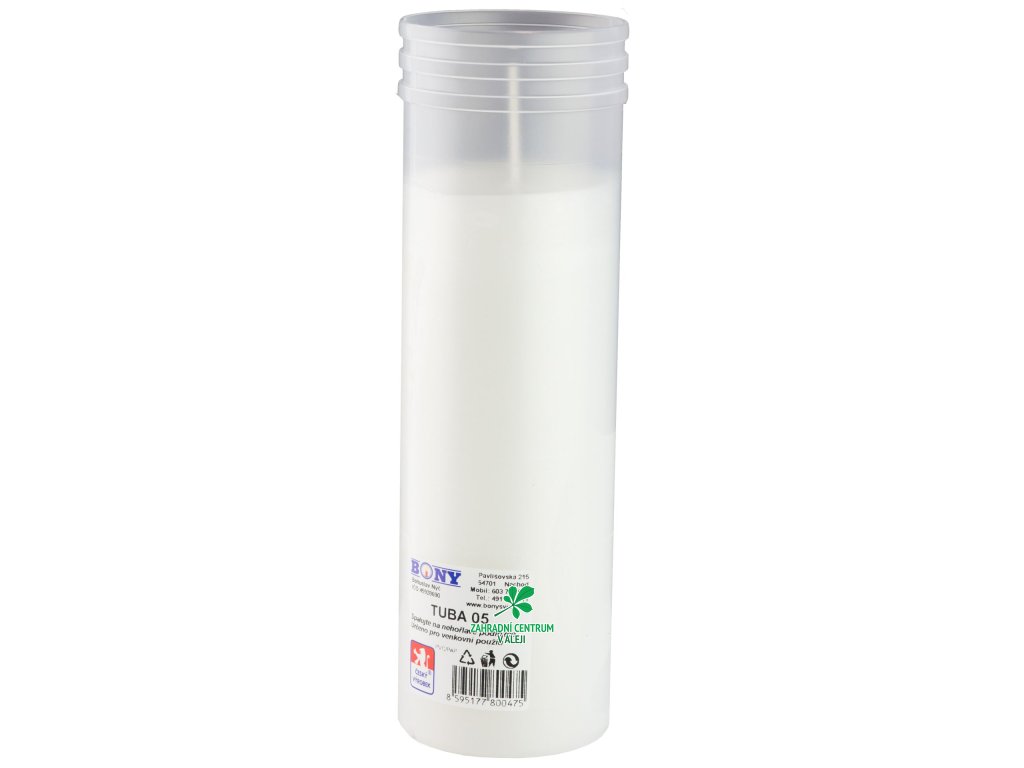 Svíčka v plastovém průhledném obalu určená pro venkovní použití například na hřbitovy s dlouhou dobou hoření až 160 hodin. Doba hoření závisí na klimatických podmínkách. Určeno pro venkovní použití.