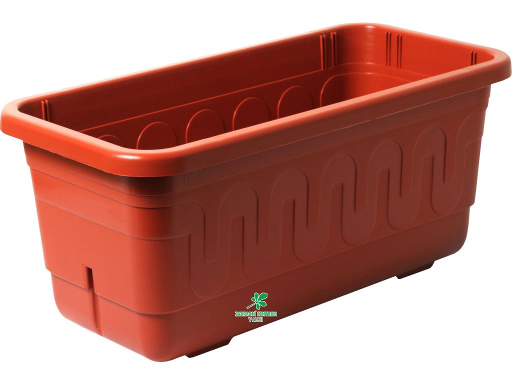 Plastový truhlík vhodný při pěstování venkovních i pokojových rostlin se samozavlažovacím systémem s trychtýřky a hladinoměrem.