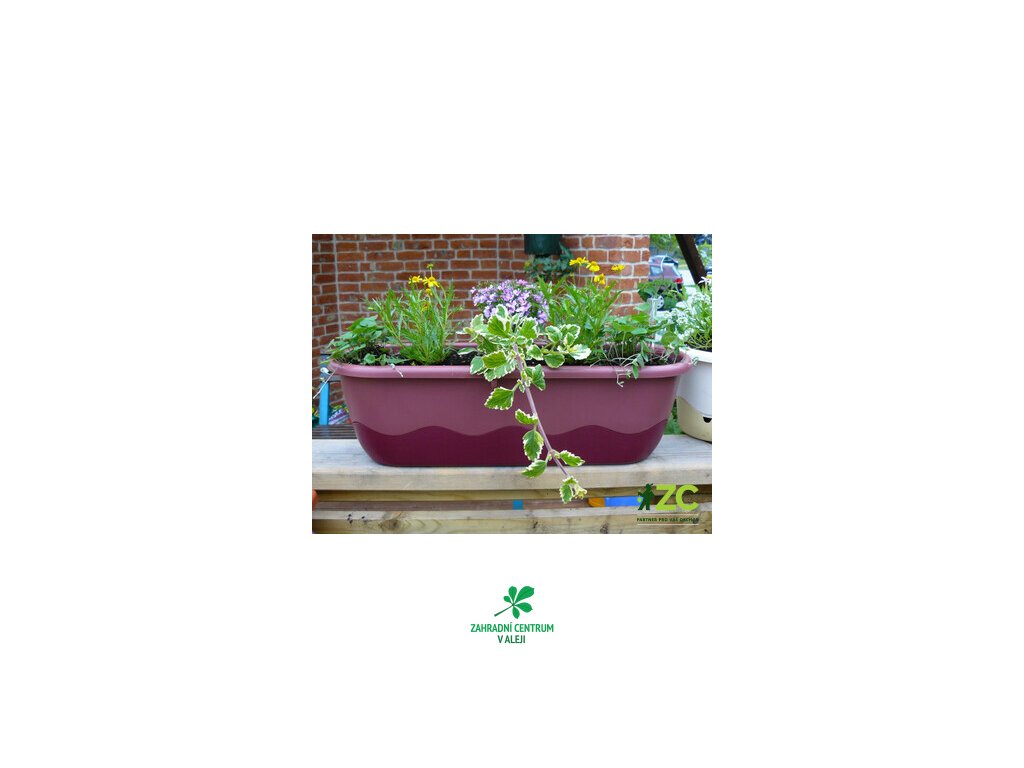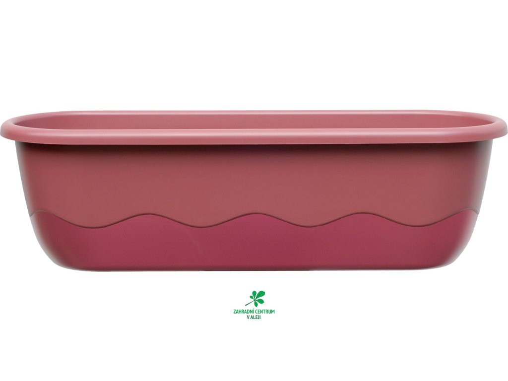 Samozavlažovací truhlík Mareta 80 cm v barevné kombinaci růžová a vínová. Obsahuje hladinoměr, zalévací šachtu, knot a sponu.