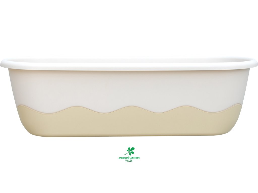 Samozavlažovací truhlík Mareta 60 cm v barevné kombinaci slonová kost světlá a slonová kost tmavá. Obsahuje hladinoměr, zalévací šachtu, knot a sponu.