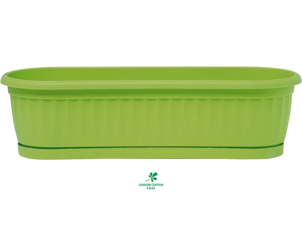 Plastový mini truhlík s dezénem a miskou v zelené barvě.