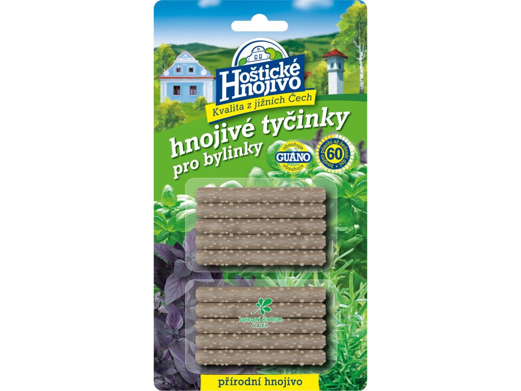 Hoštické tyčinky jsou vhodné pro všechny druhy bylinek - zelené koření, jako jsou majoránka, pažitka, bazalka, máta, libeček, řeřicha, saturejka, dobromysl, rozmarýn, petržel, kopr a další druhy aromatických rostlin. Hnojivové tyčinky obsahují navíc guáno, pocházející z trusu mořských ptáků, které aktivuje půdní mikrofléru a dodává rostlinám potřebné živiny.