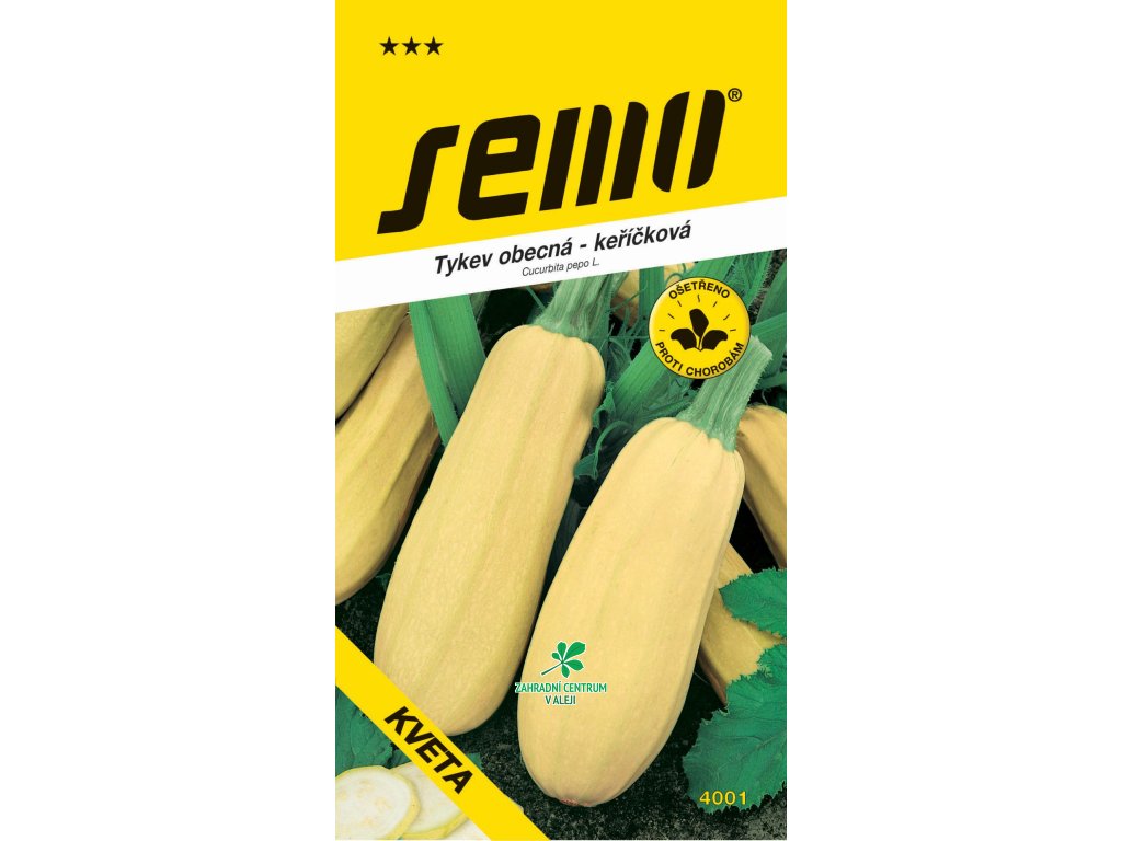 KVETA (Cucurbita pepo L.) – keříčková, lahůdková (chřestová) tykev. Plody jsou válcovité až kyjovité, v technické zralosti zelenavě bílé až žlutobílé, v botanické zralosti žluté až krémově žluté. Dužnina je žlutobílá, hustá, šťavnatá. Průměrná hmotnost plodů je 1,5 kg. Vegetační doba je 70 dnů, ze 100 m lze sklidit 600 – 650 kg plodů. Sklízíme postupně od července do září mladé plody nebo plody v technické zralosti, které můžeme upravit na tykvové zelí nebo přívařky. Spon 120 x 80 cm, 100 x 100 cm.