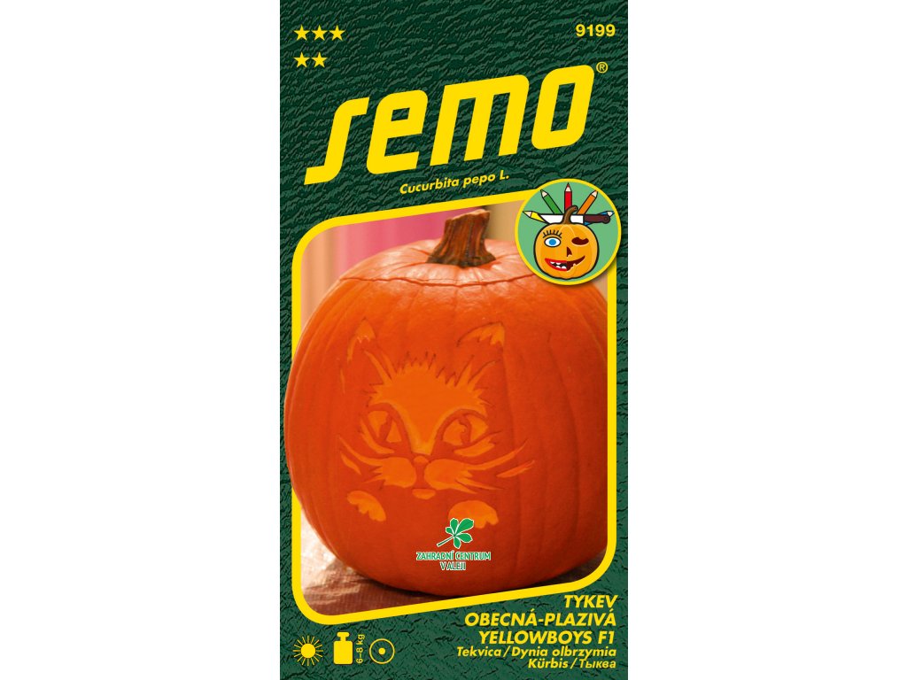 YELLOWBOYS F1 (Cucurbita pepo L.) – tykev vhodná pro HALLOWEEN. Plody o hmotnosti 8 – 10 kg jsou ploše kulaté, s výrazně oranžovou pokožkou s atraktivním žebrováním. Pokožka je dostatečně pevná, ale není tvrdá, takže se dobře vykrajuje. Vyniká vysokou tvarovou vyrovnaností plodů. Sytě oranžová dužina je vhodná pro kuchyňskou úpravu, zejména je vynikající na dýňové polévky.