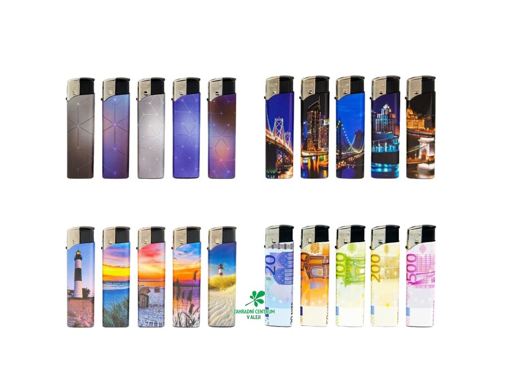 Plnitelný zapalovač s piezoelektrickým zapalováním a s regulací výšky plamene. Vhodný pro zapalování kamen, krbů, grilů, svíček, plynových sporáků, cigaret atd. V display kartonu je 5 barev zapalovačů.