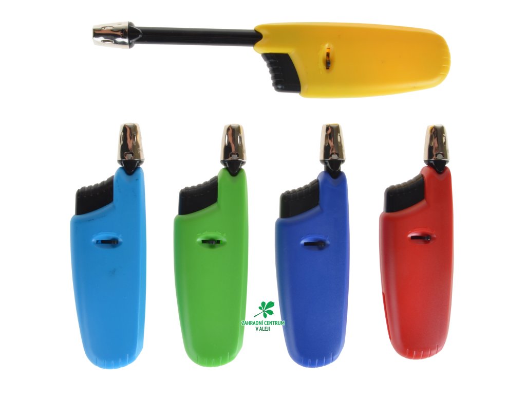 Plnitelný teleskopický zapalovač s regulací výšky plamene. Vhodný pro zapalování kamen, krbů, grilů, svíček atd. V display kartonu 5 barev zapalovačů..