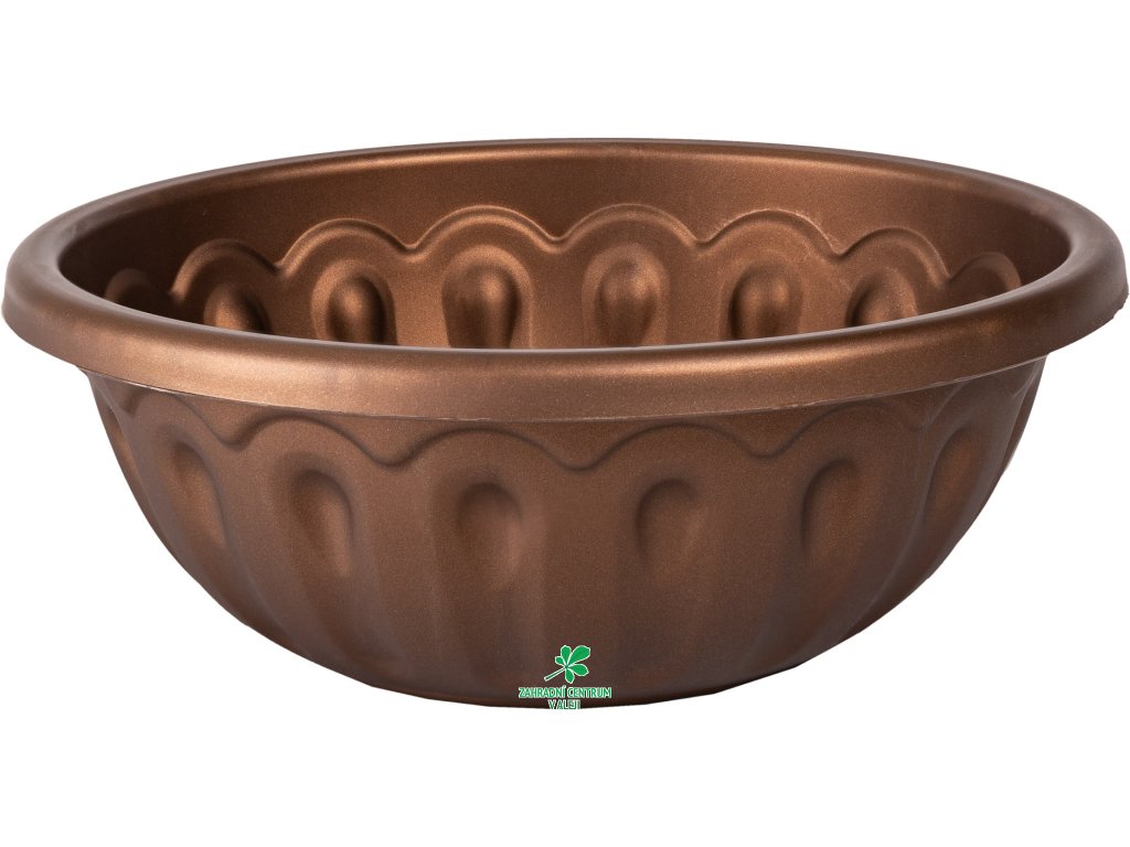 Plastová žardina s vrchním průměrem 22 cm, spodním průměrem 11,2 cm.