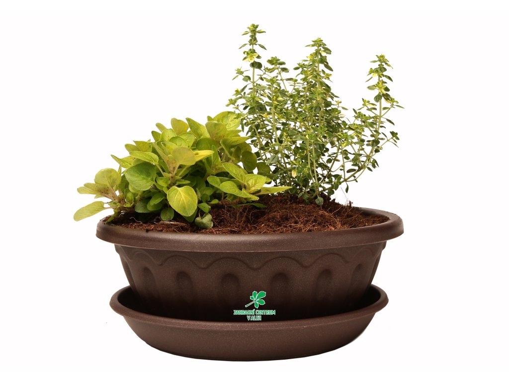 Plastová žardina s vrchním průměrem 30 cm, spodním průměrem 15,3 cm.