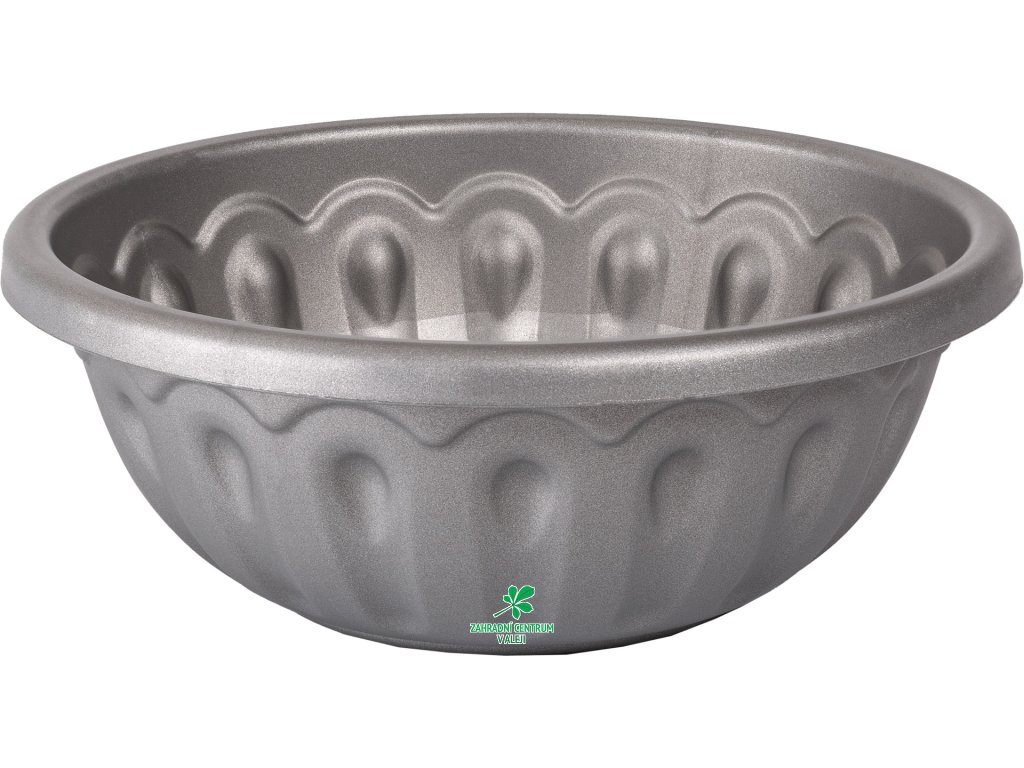 Plastová žardina s vrchním průměrem 22 cm, spodním průměrem 11,2 cm.