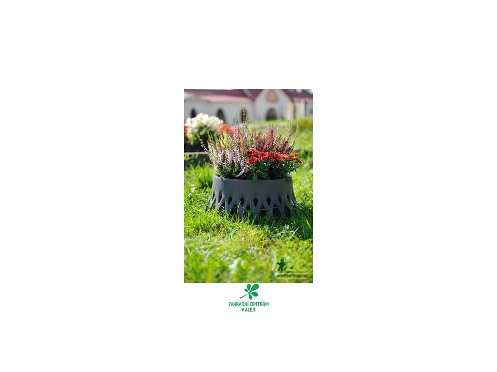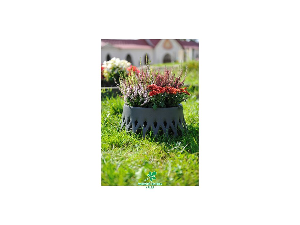 Samozavlažovací žardina Roseta přináší nový rozměr do pietní floristiky. Její elegantní tvar uctívá památku zemřelých důstojným způsobem, krajkový detail je odvozen z ozdobných roset u květinových vazeb.